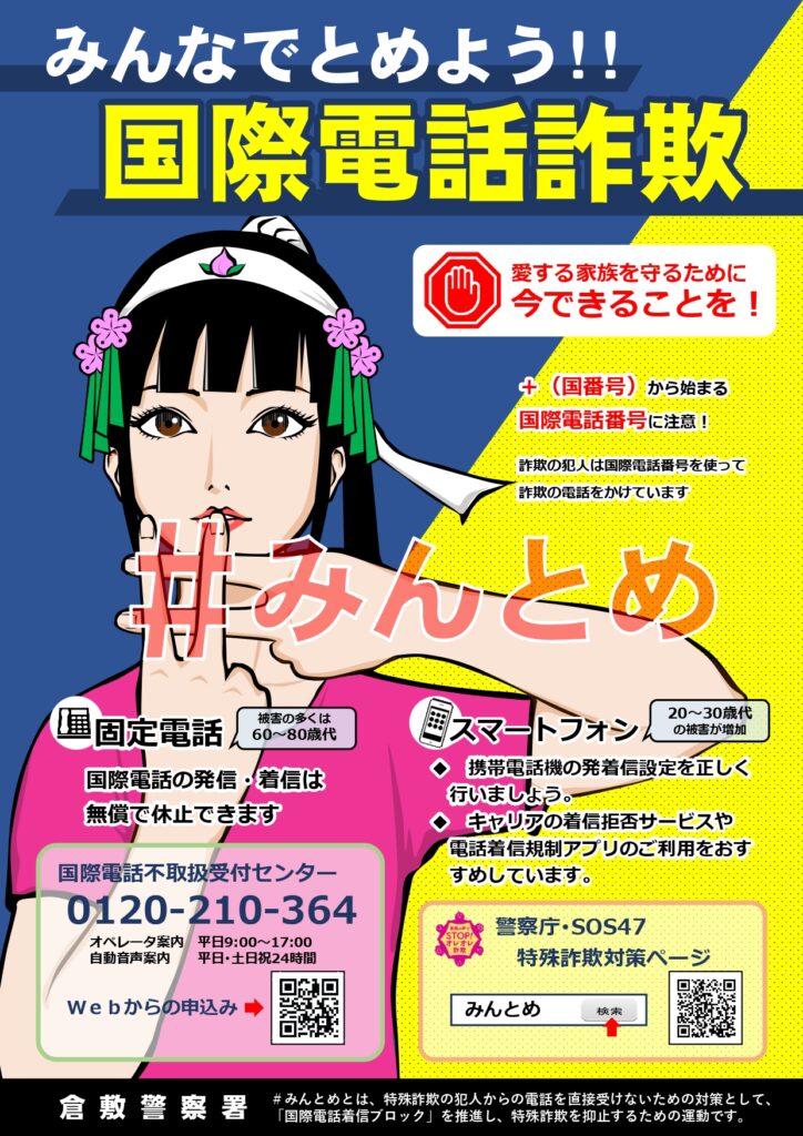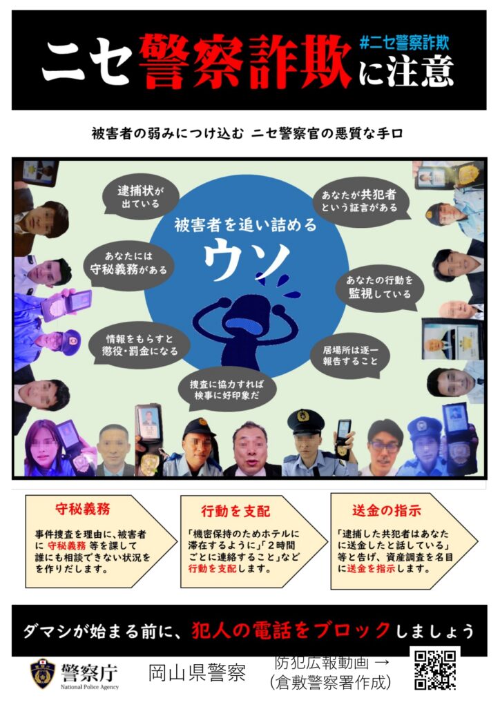 犯罪のない安全・安心のまちづくりを推進特殊詐欺を始めとした各種防犯広報啓発活動に活用する広報チラシ (倉敷警察署、生活安全課よりの資料)