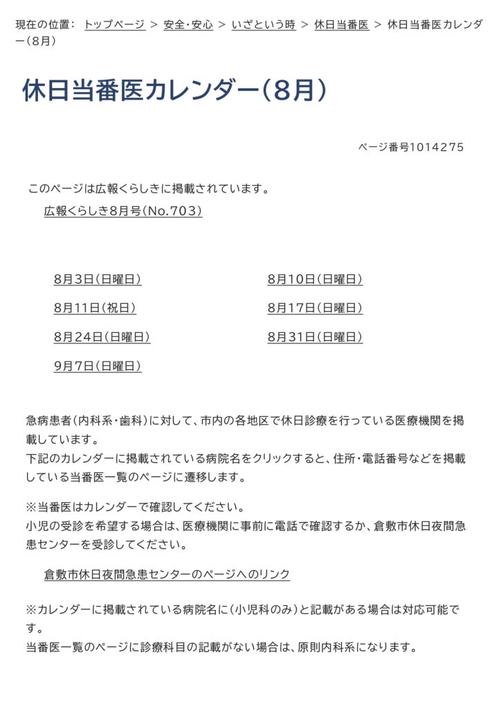 8月 休 日 当 番 医 の カ レ ン ダ − の お 知 ら せ 2025 7/25 運営 2025年7月25日 運営 よかったらシェアしてね! URLをコピーしました! URLをコピーしました! 令和7年度 夏 祭 り 開 始 特殊詐欺 防犯広報広報 この記事を書いた人 masujyuminkyou 関連記事 特殊詐欺 防犯広報広報 2025年8月9日 7月の休日当番医のお知らせカレンダ− 2025年7月2日 6月の休日当番医カレンダー 2025年6月13日 万 寿 東 学 区 くらしき まち歩き さと歩きマップ 健康アップウォ−キング実施しました。 2025年5月25日 5月 休日当番医カレンダ− 2025年5月25日 熱中アラ−ト、23日から運用夏の猛暑に備えて下さい 2025年5月25日 囲碁ボ−ル⼤会 参加しませんか ? 2025年5月25日 百日咳の患者が増加しています! 2025年5月25日 コメント コメントする コメントをキャンセルコメント ※ 名前 ※ メール ※ サイト 次回のコメントで使用するためブラウザーに自分の名前、メールアドレス、サイトを保存する。 上に表示された文字を入力してください。